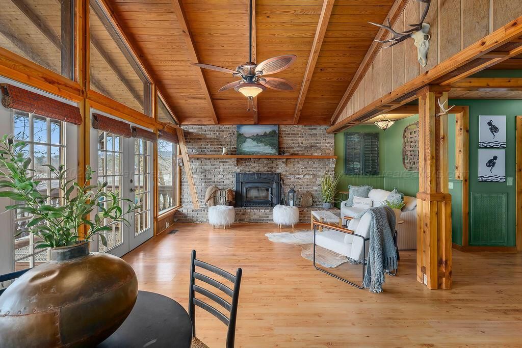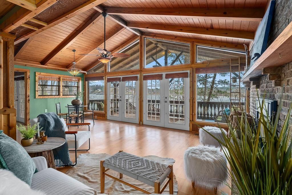 Perched slightly above the water, this cottage has all the charm of a classic lake getaway down to the handmade fish banisters lining the lakeside porches. Meticulously cared for and maintained for nearly 20 years, this cottage offers a peaceful setting tucked away in the trees. Flagstone boulders take you to the dock that sits in deep year-round water around the channel from Smith Lake Park.